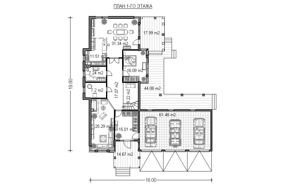 Проект загородного особняка |  Проект загородного особняка |  Проект загородного особняка (план 1го этажа) |