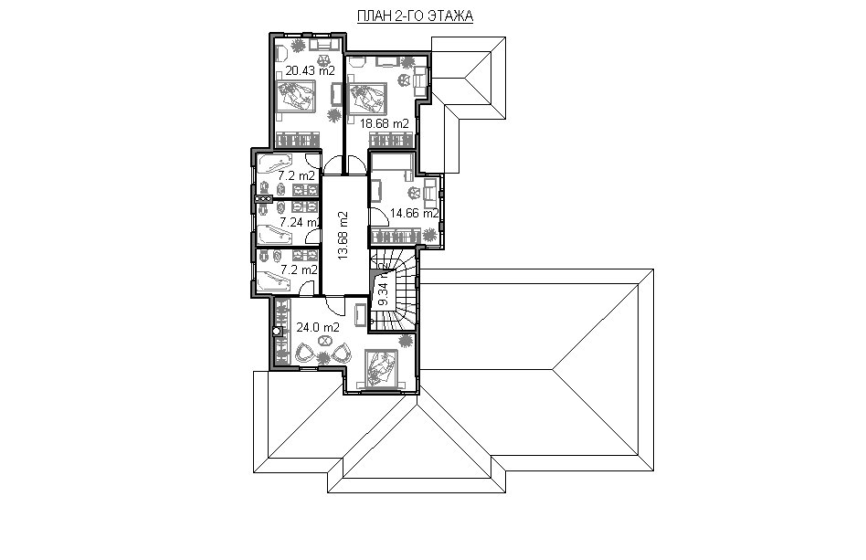 Проект загородного особняка (план 2го этажа) |  Проект загородного особняка (фасад 1-2) |  Проект загородного особняка (фасад 2-1) |