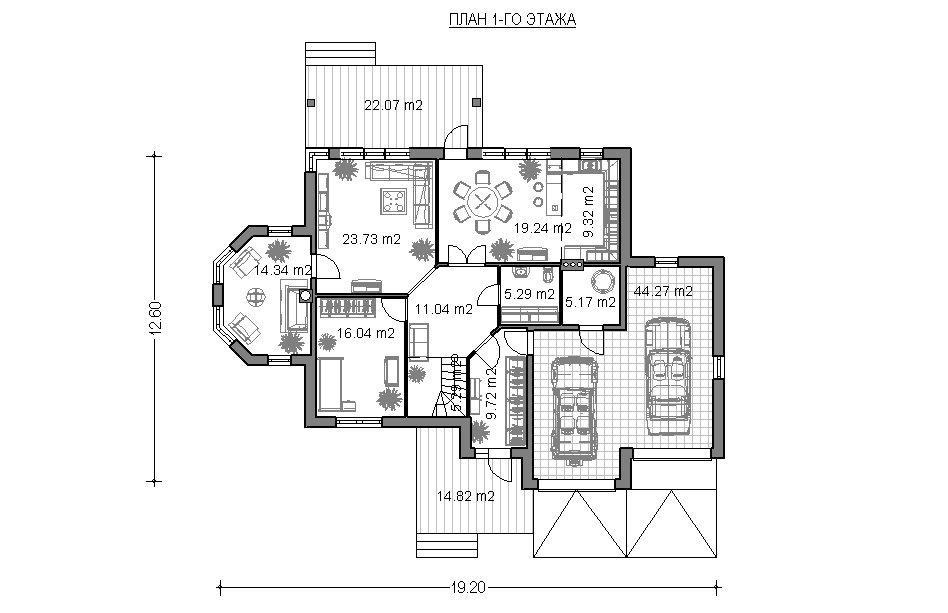 Проект коттеджа (план 1го этажа)